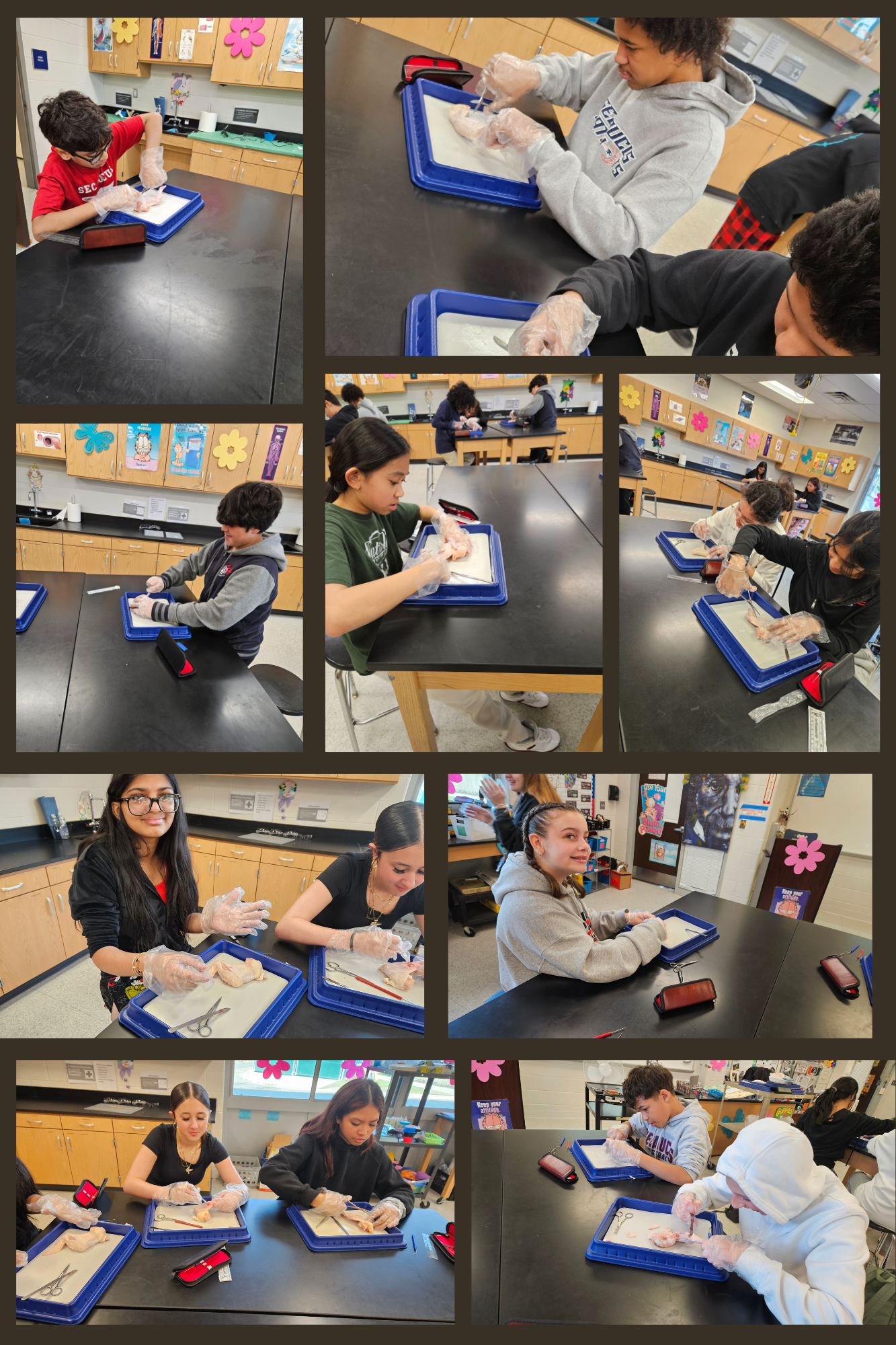 Exploring the Building Blocks of Life: Mrs. Taylor’s 7th Graders Dive into Biology with Microscopes and Dissections Students in Mrs. Taylor's 7th grade science classes have begun a unit on biology. Students have been learning to use microscopes to observe cells, and most recently dissected a chicken wing to observe tissues and organs. Students were also able to make comparisons to their own arm since the anatomy of the chicken wing has similar structure and functions. Students observed skin tissue, muscle tissue, connective tissue and bone. By squeezing a muscle students were able to see how muscles and bones interact to create motion of the limb. At the end of the lab, students broke a bone to observe the bone marrow, where blood cells are made. Print